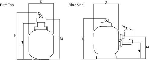 Filtros moldeados por soplado en una sola pieza, sin unión ni soldaduras. Fabricados con resinas plásticas inalterables por los agentes químicos atmosféricos. Apertura cómoda de la cubierta. Equipadas con un manómetro y purga de agua manual y una válvula multivías. Color marfil. Presión máxima de trabajo: 2,5 kg / cm² para filtros diám. 430mm y diám. 480mm, y de 2kg / cm² para los filtros diám. 560mm y diám. 660mm.
