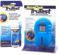 Diseñado según las características de las piscinas y de los spas, el lector digital de tiras para el análisis AquaChek TruTest asocia comodidad de utilización y precisión de medición. Solamente es necesario mojar la tira en el agua de la piscina o del spa e introducirla en el lector de tiras para obtener un resultado digital rápido y preciso en algunos segundos.