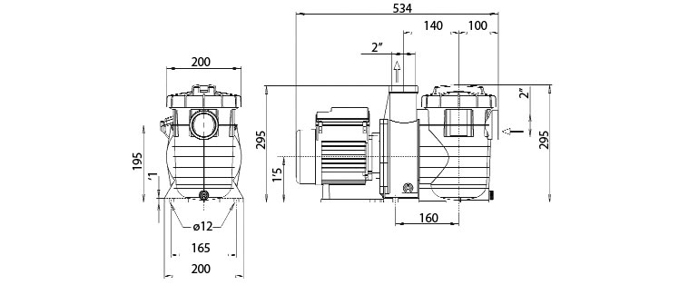 3 entradas de aspiración en 2" para conectar independientemente el tapón del fondo, skimmer y aparato de limpieza.