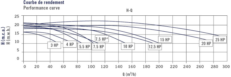 Caudales posibles desde 50m³/h, hasta 275 m³/h a 10 m.c.a.