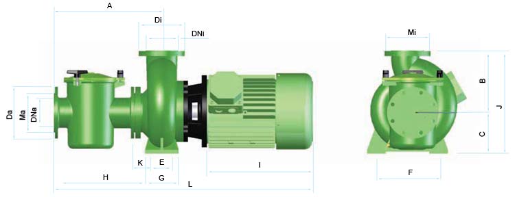 | Modelo | A | B | C | Da | Di | DNa | DNi | E | F | G | H | I | J | K | L | Ma | Mi |