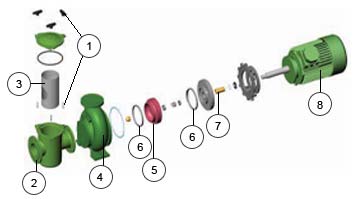 La concepción de la bomba le permite desmontar completamente las partes giratorias por el lado del acoplamiento, sin necesidad de desmontar el cuerpo de la bomba de instalación.