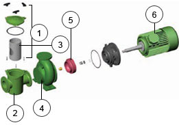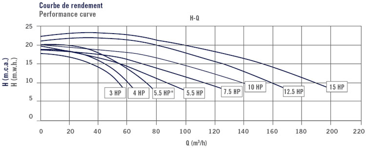 Bombas centrífugas  3.000 r.p.m. (revoluciones por minuto), fabricadas en hierro fundido que integra una voluta en espiral y el pre-filtro adosado. El rango del caudal alcanza 190 m³/h a 10 m.c.a.  Las conexiones de aspiración e impulsión disponibles van desde DN 80-3” hasta DN 125-5”. El grado de protección del motor es IP-54 y el nivel de aislamiento de Clase F.