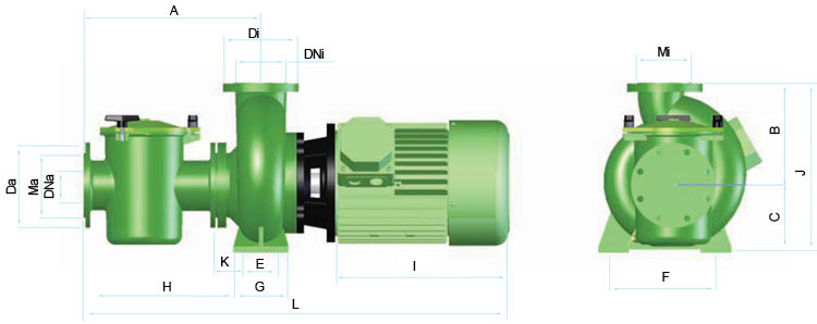 | Modelo | A | B | C | Da | Di | DNa | DNi | E | F | G | H | I | J | K | L | Ma | Mi |