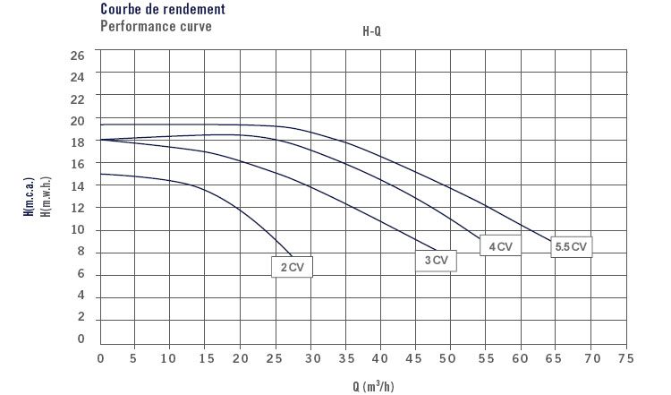 Las bombas de hierro fundido se han ideado para obtener el rendimiento más alto, suministrando rangos de caudal de hasta 60m³/h a 10 m.c.a. Se ha obtenido una mejor estabilidad del conjunto al realizar la base de la bomba con un cuerpo en hierro fundido.