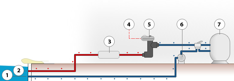 Caudal mínimo de agua de la bomba de filtración : 5m3/h