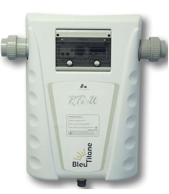 Los calentadores eléctricos BLEU TITANE se entregan con doble calentador de inmersión de TITANIO, aportándole una resistencia óptima contra la corrosión y compatible con los tratamientos por electrolisis salina. La gama de los calentadores en U, BLEU TITANE, permite obtener unas potencias de 12, 15 o 18 kw para el calentamiento de piscinas de hasta 120 m3.