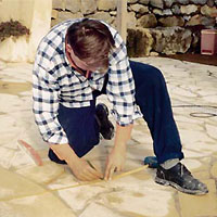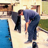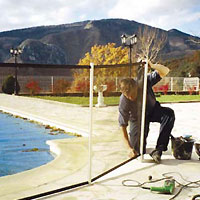 Medir la barrera con relación a la piscina. Trazar una línea con el fin de que los postes estén alineados. Marcar con un bolígrafo el agujero a perforar.