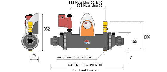 Dimensiones (en mm) del intercambiador Zodiac HEAT LINE DESNUDO