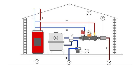 - En el local técnico, cerca de la caldera, en la salida de la filtración, sin by-pass.