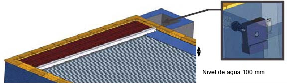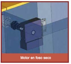 El motor está alojado en un foso seco y ventilado, situado al lado de la piscina y en la prolongación del eje, lo que facilita el acceso al mismo.