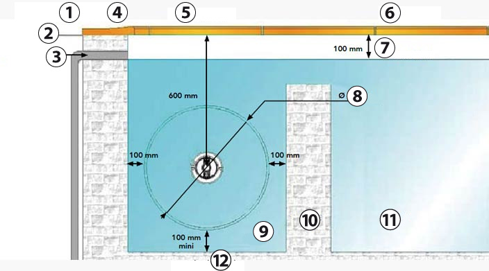 Existen dos tipos de foso : el foso de obra elaborado en el momento de la construcción de la piscina (esquema 1) o el tabique de separación de PVC (esquema 2).