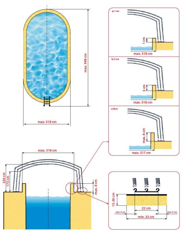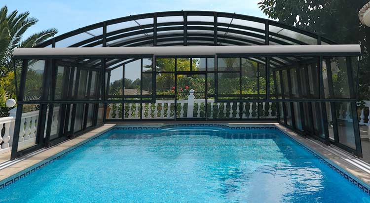 Cubierta alta telescópica para piscina de 5 x 9 m