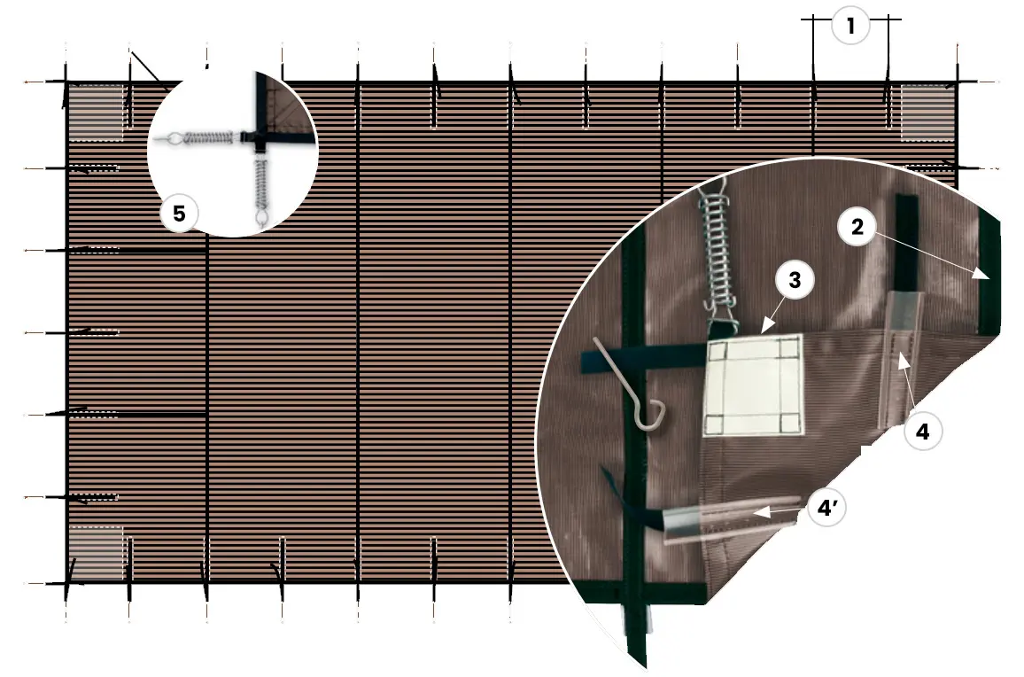 Según la configuración de su suelo, se ofrecen varios sistemas de fijación opcionales con su lona de invierno filtrante GRILLE FREEZE: