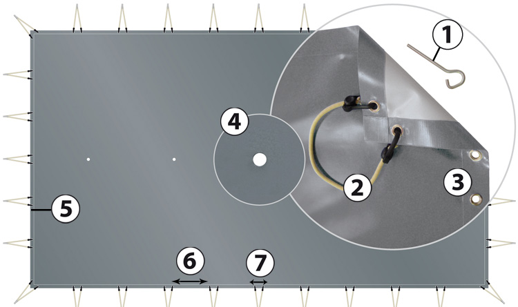 - Su sistema de fijación con doble ojales con tensores elásticos y anclajes fijos proporciona una tensión perfecta una vez instalada.