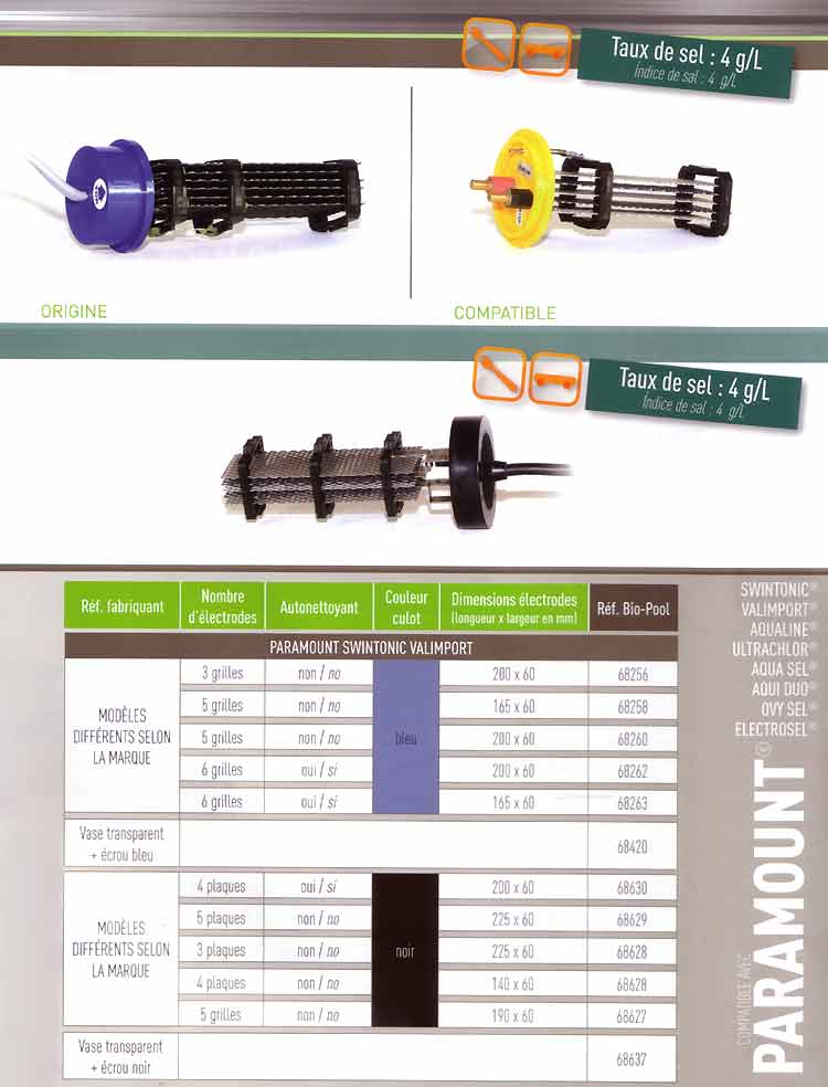 Células compatibles para Cloradores salinos PARAMOUNT SWINTONIC, célula AQUALINE, AQUASEL, célula OVY SEL, AQUI DUO, ELECTRO SEL