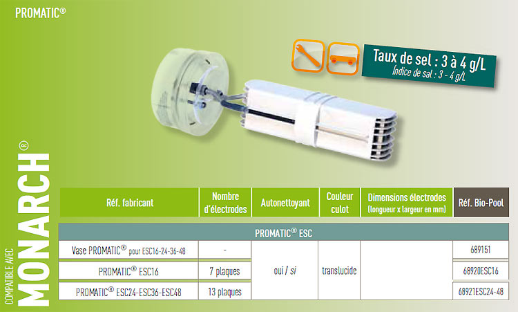 Células compatibles para Cloradores salinos PROMATIC ESC de MONARCH