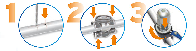 1- Realice dos agujeros de 20 mm de diámetro en la tubería.