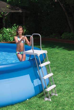 Realizadas en acero y en plástico anti-golpes, las escaleras INTEX están diseñadas para las piscinas elevadas de hasta 1m32 de alto.