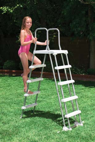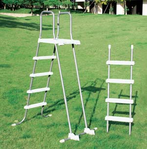 Las escaleras INTEX con peldaños amovibles le aseguran un máximo de seguridad para el acceso a su piscina elevada.