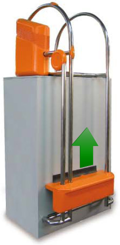 La escalera Waterlift va equipada con un único peldaño que sube o baja automáticamente, gracias a la activación de una tecla situada en la rampa.