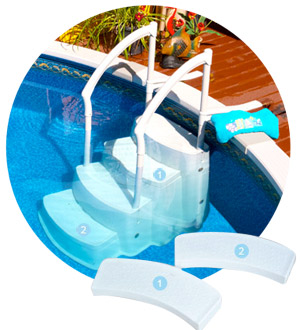 La escalera amovible FESTIVA 4 peldaños de Lumi-O es el resultado de varios años de trabajo. Económica y práctica, es fácil de instalar y se adapta unicamente a las piscinas de fondo plano. Su superficie antideslizante asegura una mayor seguridad.