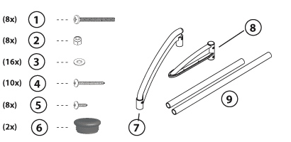 9 - Tubos soportes (2 largos, 2 cortos)