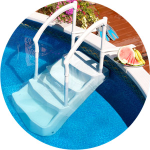 El bloque de lastre situado en la parte trasera de los peldaños impedirán que sus hijos pasen por debajo de la escalera sumergida.