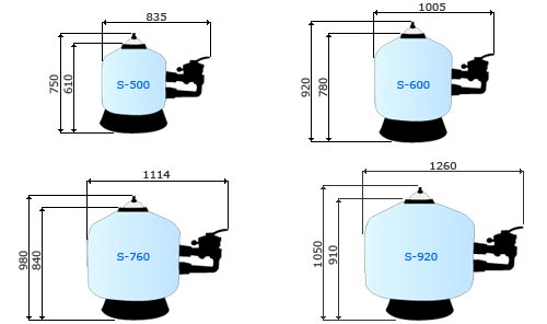- Modelos Side equipado con tamices en el fondo del filtro de ABS, especial para piscinas.
