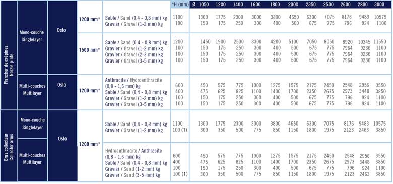 Se obtiene una mejora de la eficacia de filtración y de lavado mediante una óptima combinación del medio filtrante, compuesto por antracita de arena y de gravilla que está recomendada para capas de 1,20 m o más. Esto reduce de este modo la pérdida de carga y hace aumentar la potencia de filtración.