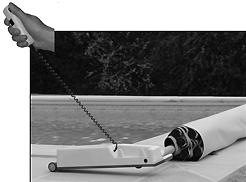 Para desenrollar el cobertor, tire de la cuerda de tiro desde el lado opuesto del lugar de almacenamiento del cobertor (Nota: manual de uso de su cobertor).
