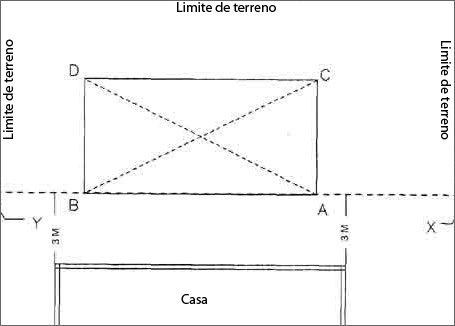Si la piscina debe situarse a 3 metros detrás de la casa :