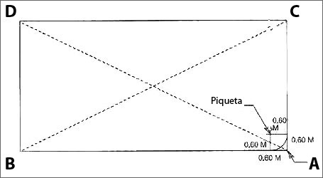 Mida a partir del punto A la longitud de la línea XY una distancia igual a la longitud de la piscina y clave otra estaca, este punto lo llamaremos B.
