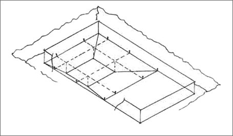 2. Deberá definir el nivel, la elevación de la piscina. En la ausencia de una referencia pre-establecida, utilice un nivel de obra para medir la elevación del suelo sobre al menos 4 sitios, sea las 4 esquinas del rectángulo.
