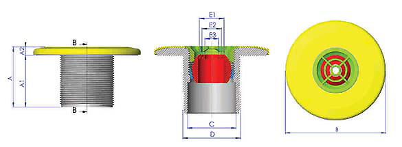 | A | A1 | A2 | Ø B | Ø C | D | Ø E1 | Ø E2 | Ø E3 |