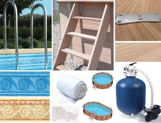 Detalle de los elementos comprendidos en el kit de la piscina de madera composite DAVAO