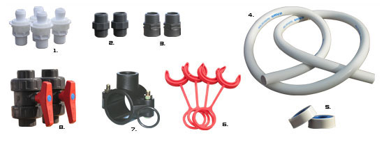 El de fontaneria completo para la conexion de todos los limpiafondos con bomba de sobrepresion. Conexiones para pvc rigido exclusivamente. Instalacion simple y rapida, sin cola, conexion en un maximo de 1 hora. Fije los collares de la toma en las tuberias existentes, despues conectelos a la bomba de sobrepresion a traves de los conectores rapidos « QUICK CONNECT ». Puesta en marcha inmediata despues de la conexion. Herramientas limitadas, un taladro y una llave de 13.