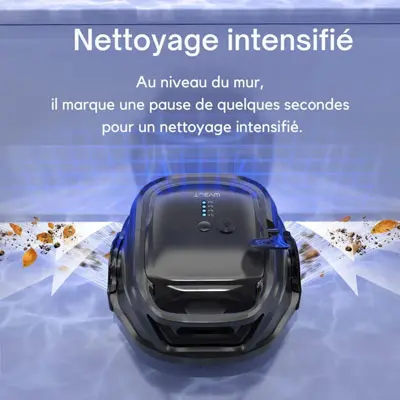 Este robot de piscina es especialmente eficaz en piscinas de forma irregular, gracias a su sistema de detección automática de paredes y su capacidad para adaptar su trayectoria para asegurar una limpieza completa.
