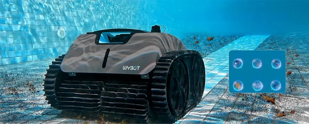 El WYBOT C1 PRO está diseñado para limpiar el fondo, las paredes y la línea de flotación de la piscina. Ofrece una cobertura completa para una limpieza profunda, incluso en zonas de difícil acceso.
