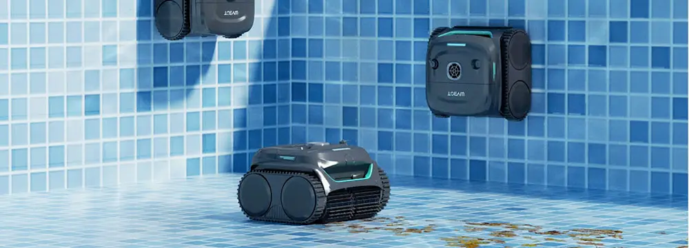 Al detectar movimientos e inclinaciones, el robot mantiene su rumbo, corrige su trayectoria y cubre la piscina de forma metódica.