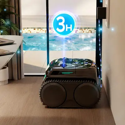 Gracias a su batería de litio de alta capacidad (21,6V / 4600mAh), el Wybot C2 ofrece hasta 3 horas de funcionamiento continuo.