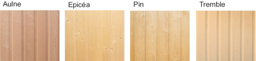 4 esencias diferentes de madera están disponibles para el revestimiento de las paredes, techo, ventanas y puertas: Picea, Pino, Alamo o Aliso.