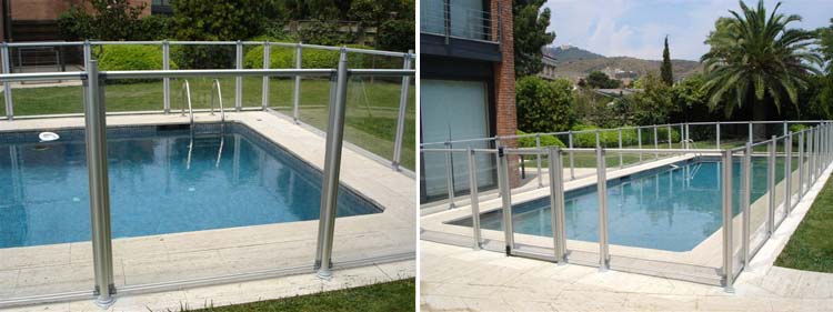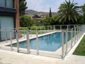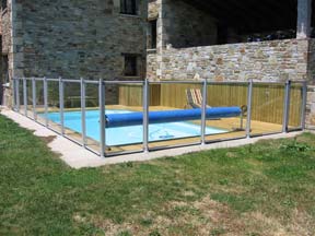 Una valla de 1,22 m. de altura, que cumple la normativa AFNOR NF P 90-306, con certificado de conformidad del LNE destinada a limitar el acceso de la piscina, a niños menores de 5 años.