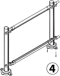 Situar el segundo poste, marcando por los agujeros de la base (como se ha hecho con el primero). Ensamblar y fijar sucesivamente, todos los postes.