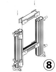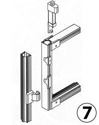 Introducir la varilla negra de plástico por las 2 bolsas, a lo largo del marco de la puerta. A continuación, deslizar los perfiles verticales. Ensamblar el marco de la puerta con las piezas de aluminio. Fijar los perfiles horizontales con los verticales, primero de abajo y después de arriba. El sistema de cierre dispone de todos los ajustes posibles.