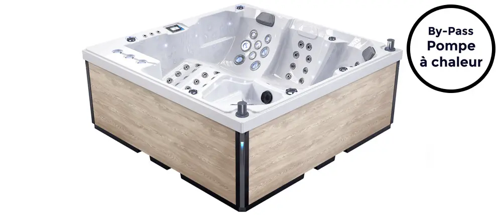Este spa cuenta con un by-pass integrado para conectar fácilmente una bomba de calor, permitiéndote beneficiarte de un sistema de calefacción más económico que un simple calentador.