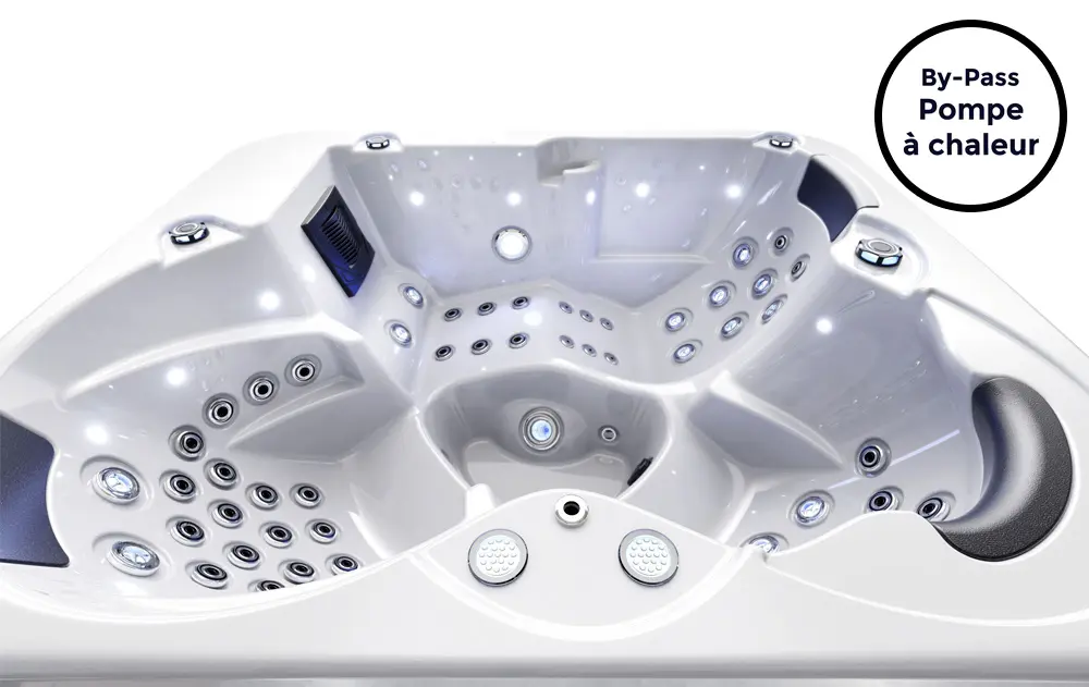Este spa cuenta con un by-pass integrado para conectar fácilmente una bomba de calor y le permite beneficiarse de un sistema de calefacción más económico que un simple calentador.
