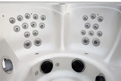 Su cuba de acrílico Aristech, fabricada en Estados Unidos, garantiza resistencia y durabilidad, además de ofrecer un diseño elegante. Su revestimiento gris añade un toque moderno que se adapta a diversos entornos exteriores o interiores. Su aislamiento estándar garantiza una eficiente conservación del calor, reduciendo el consumo energético.