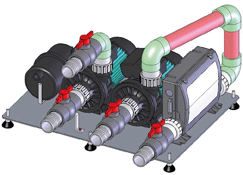 Válvulas 1/4 de vuelta en cada entrada y salida, platina montada sobre zócalo (dimensiones 580x760).