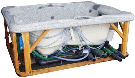 Zócalo montado sobre soportes antivibratorios ajustables en altura, permitiendo mover la maquinaria del spa hasta una distancia de 7,5 metros.